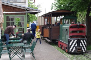 Dann kam das Jahr 1987 und damit das Jubiläum 150 Jahre Eisenbahn in Österreich. Damals waren sowohl Events gefragt, zugleich gab es eine gewisse Nostalgiewelle. In dieser Kombination waren Ausflugsfahrten mit historischen Fahrzeugen, insbesondere Dampfloks für ein breites Publikum interessant. Unsere Aktiven waren damals daher auch mit Normalspurfahrzeugen des VEF beschäftigt. Gleichzeitig führten wir auch die Feldbahn auf transportablen Anlagen vor. Die Dampflok 91.107 des VEF, die Pressburgerbahnwagen des NÖ Lokalbahnmuseums und der VT 41 des Technischen Museums Wien – alle in unserem Museum beheimatet, waren echte Stars.